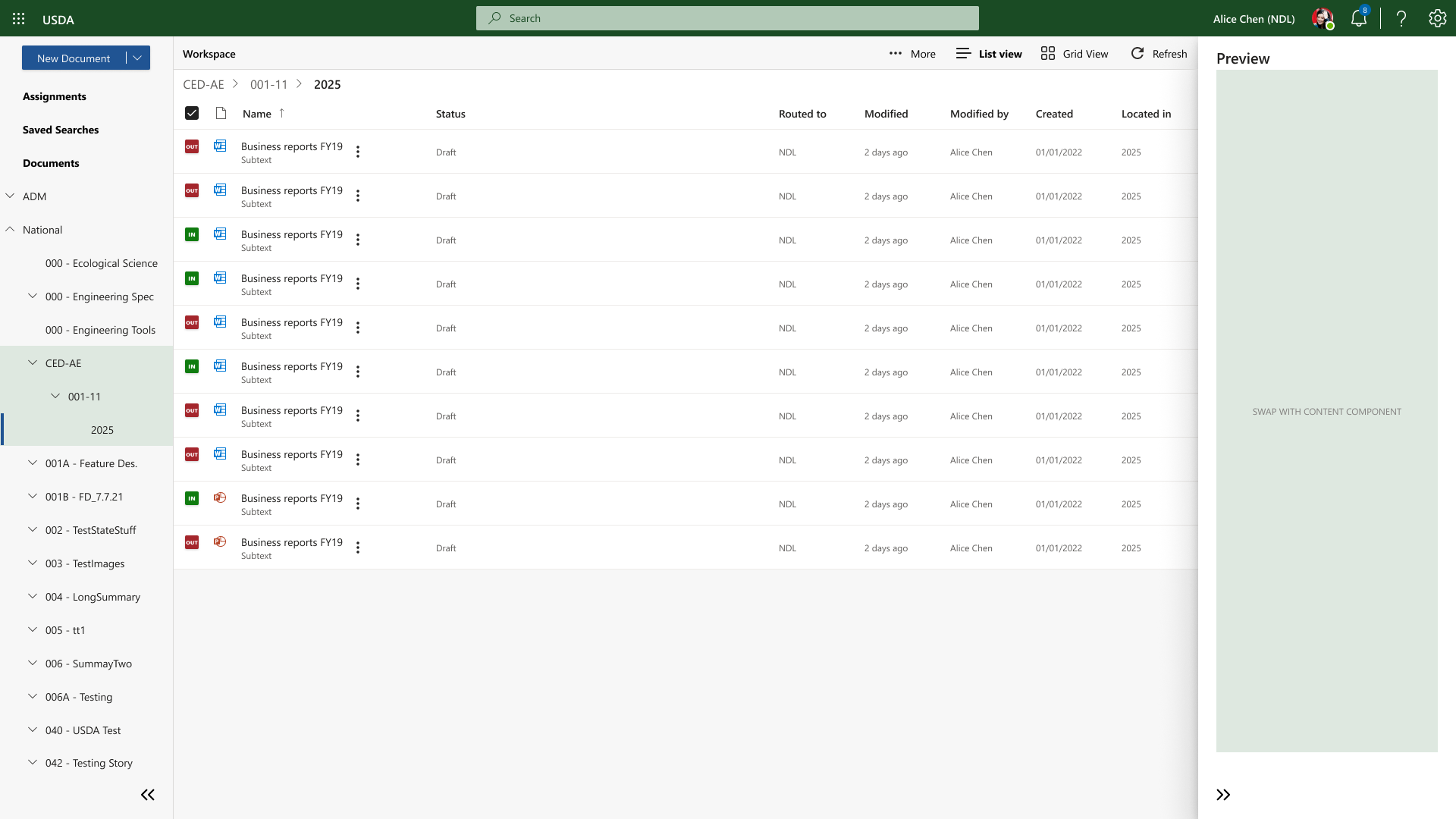 The USDA’s Conservation Practice Documents - Document Management System (CPD-DMS) was running on outdated platforms (IBM FileNet and Quark Publishing Platform). The system managed 63,000+ documents across 53 content types, 16 workflows, and up to 23 statuses each.